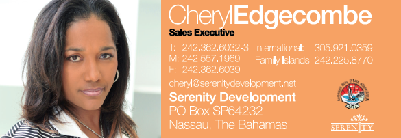 I can guarantee you that throughout the island of New Providence, Serenity clearly distinguishes itself from all other developments in its class; in fact, I would venture to say that our custom nishes throughout rivals even that of the ultra-high end developments. I invite you to schedule a personal tour with one of our friendly in-house Bahamas Real Estate Association certied sales representatives, to fully appreciate the Serenity experience... you too will quickly realize that we are in a league of our own. Nowhere else on this Island can you nd ownership in a more luxurious rst-class community at such an aordable entry price.